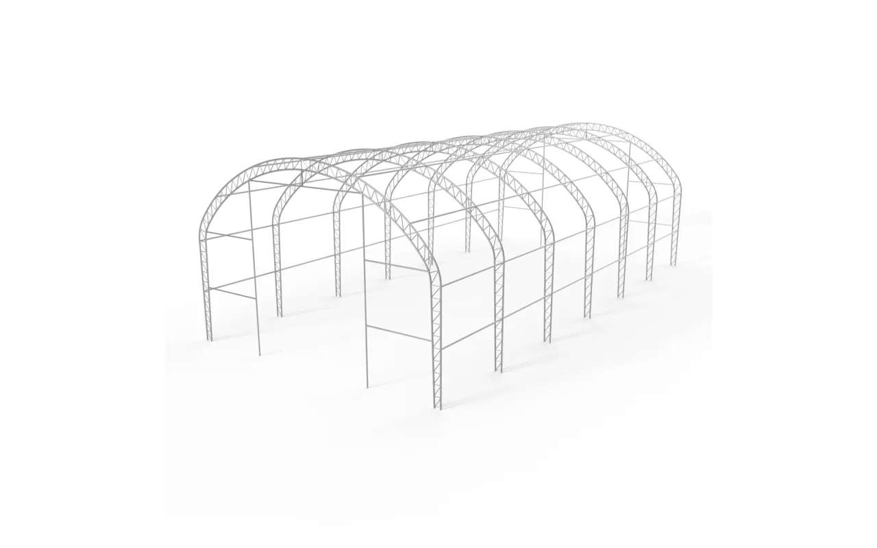 Hala namiotowa łukowa z pionowymi ścianami 9,15x9,15m PVC 900g/m² w wersji zielonej to funkcjonalny obiekt roboczy przeznaczony do magazynowania, przechowywania maszyn oraz prowadzenia pracy operacyjnej. Połączenie łukowej geometrii dachu z pionowymi ścianami bocznymi pozwala w pełni wykorzystać szerokość konstrukcji bez powstawania martwych stref przy bokach. Dzięki regularnej bryle wnętrza łatwiej ustawić regały, sprzęt i stanowiska robocze, a przestrzeń pracuje jak klasyczny magazyn. To rozwiązanie dla rolnictwa, logistyki i przemysłu – wszędzie tam, gdzie hala ma realnie wspierać codzienną pracę.