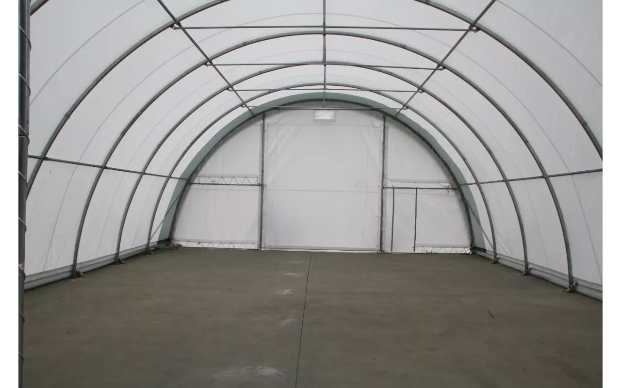 Model 9,15×12 m z białą plandeką PVC 900 g/m² to wzmocniona wersja hali łukowej do intensywnego użytkowania w zmiennych warunkach atmosferycznych. Wysoka odporność materiału na przetarcia i promieniowanie UV sprawia, że hala świetnie sprawdza się jako całoroczne zadaszenie magazynowe lub techniczne. Brama na linę i pełna tylna ściana zapewniają bezpieczne zamknięcie przestrzeni. Chcesz wiedzieć, jak szybko możemy ją dostarczyć? Skontaktuj się z nami i uzyskaj konkretną odpowiedź.