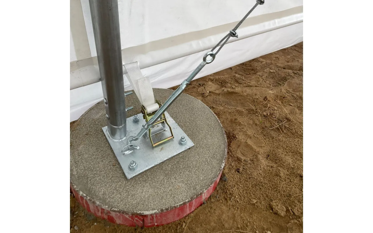Konstrukcja namiotu Hala namiotowa łukowa 12,2x24m PVC 900g/m² wyróżnia się zastosowaniem rur nośnych i łączników o zwiększonej średnicy, co przekłada się na wzrost parametrów wytrzymałościowych całego systemu. W rzeczy samej naszym sercem konstrukcji jest stal, dlatego wykorzystaliśmy walcowaną na zimno stal konstrukcyjną. Dodatkowo elementy szkieletu są perforowane eliminując spoiny, gdyż użycie tej technologii wykazuje największą odporność konstrukcji na obciążenia statyczne i dynamiczne oraz zapobiega potencjalnym deformacjom. W celu zabezpieczenia szkieletu hal namiotowych łukowych komponenty wykonane ze stali poddaliśmy procesowi cynkowania galwanicznego. Ta metoda zapewnia kompleksową ochronę przed korozją zarówno w warunkach wewnętrznych, jak i zewnętrznych. Dzięki temu, rury stalowe wykazują wysoką odporność na procesy rdzewienia. System naciągów dachowych i bocznych składa się z stalowych lin. Powoduje to stabilność konstrukcji, która nie odkształca się i pozostaje zwarta przez cały okres użytkowania. Zabezpiecza to również plandekę przed naporem śniegu oraz wiatru. Wewnętrzny system napinania jest kluczowy w Hala namiotowa łukowa 12,2x24m PVC 900g/m², ponieważ utrzymuje materiał w napięciu, co zapobiega tworzeniu się fałd i zbiorników wodnych na powierzchni plandeki. Dzięki temu, hala jest lepiej zabezpieczona przed działaniem niekorzystnych warunków pogodowych, takich jak silny wiatr czy opady deszczu. System ten również wpływa na estetykę namiotu, zapewniając mu nienaganny i profesjonalny wygląd