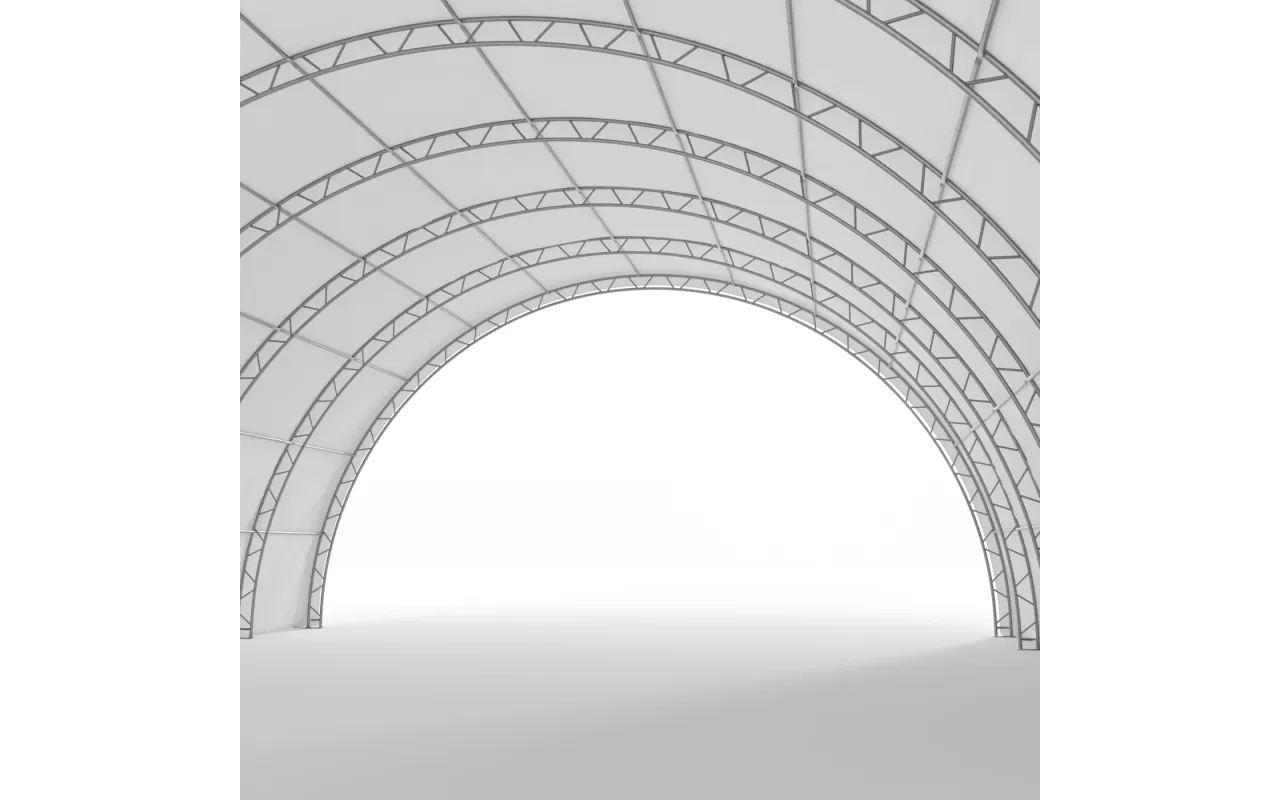 Hala namiotowa tunelowa wzmocniona 15,25x36,6m PVC 750g/m² oparta jest na stalowej, samonośnej konstrukcji z profili owalnych lub kratownicowych, które zostały ocynkowane ogniowo w celu zapewnienia maksymalnej odporności na korozję. Solidna rama nie wymaga dodatkowych podpór wewnętrznych, co pozwala zachować pełną funkcjonalność wnętrza. Poszycie wykonane z trudnopalnej plandeki PVC dostępnej w wersji standardowej (750 g/m²) lub wzmocnionej (900 g/m²) zapewnia wysoką wytrzymałość na rozciąganie, uszkodzenia mechaniczne oraz działanie promieniowania UV, deszczu, śniegu i wiatru. Kolor biały plandeki wspomaga naturalne doświetlenie przestrzeni roboczej, ograniczając jednocześnie nagrzewanie wnętrza. Dodatkowo, modułowa budowa konstrukcji umożliwia jej rozbudowę w przyszłości, co czyni halę rozwiązaniem elastycznym i długoterminowym – niezależnie od tego, czy potrzebujesz przestrzeni na kilka sezonów, czy jako stałego zaplecza logistycznego.