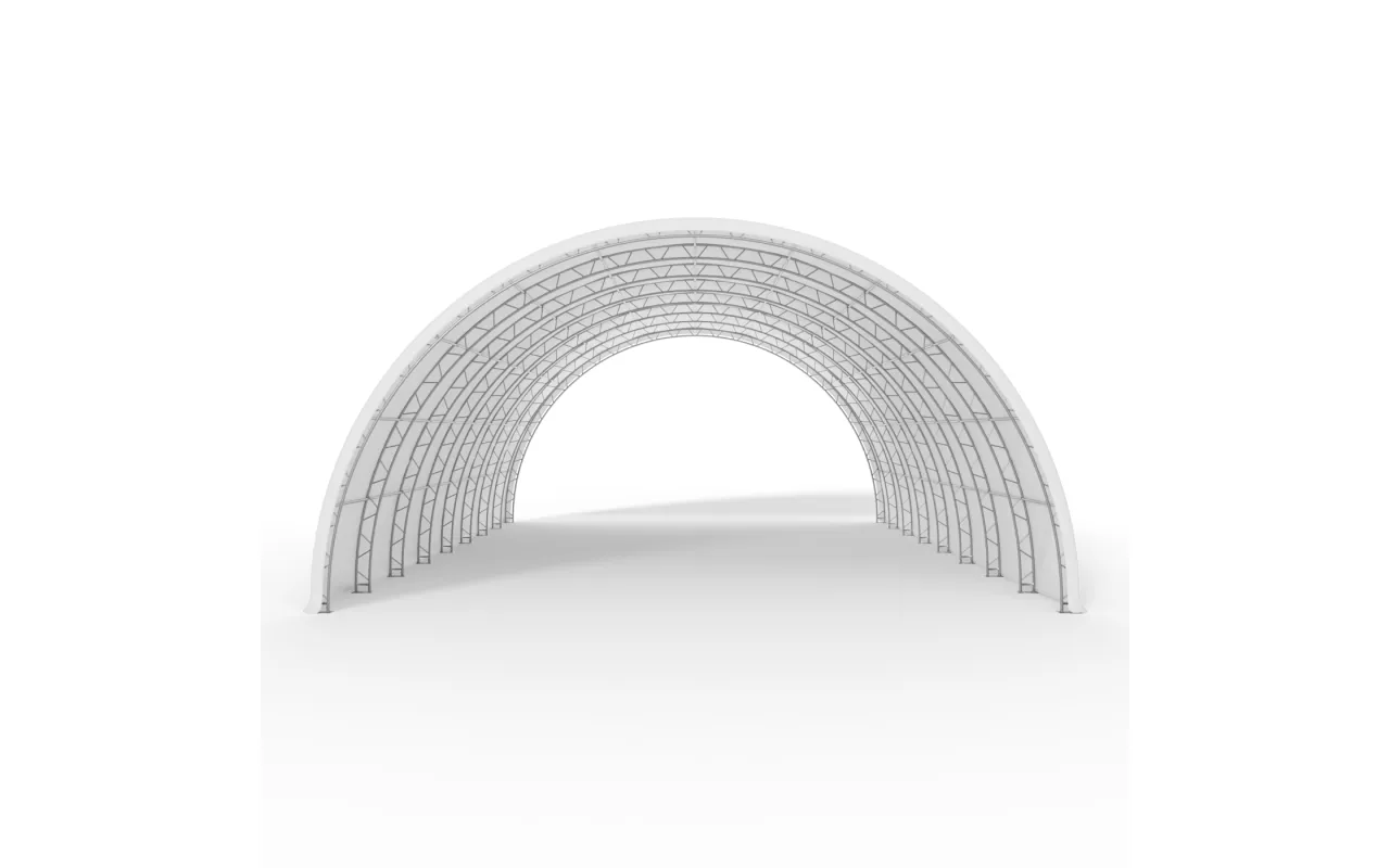 Hala namiotowa tunelowa wzmocniona 15,25x45,75m PVC 750g/m² oparta jest na stalowej, samonośnej konstrukcji z profili owalnych lub kratownicowych, które zostały ocynkowane ogniowo w celu zapewnienia maksymalnej odporności na korozję. Solidna rama nie wymaga dodatkowych podpór wewnętrznych, co pozwala zachować pełną funkcjonalność wnętrza. Poszycie wykonane z trudnopalnej plandeki PVC dostępnej w wersji standardowej (750 g/m²) lub wzmocnionej (900 g/m²) zapewnia wysoką wytrzymałość na rozciąganie, uszkodzenia mechaniczne oraz działanie promieniowania UV, deszczu, śniegu i wiatru. Kolor biały plandeki wspomaga naturalne doświetlenie przestrzeni roboczej, ograniczając jednocześnie nagrzewanie wnętrza. Dodatkowo, modułowa budowa konstrukcji umożliwia jej rozbudowę w przyszłości, co czyni halę rozwiązaniem elastycznym i długoterminowym – niezależnie od tego, czy potrzebujesz przestrzeni na kilka sezonów, czy jako stałego zaplecza logistycznego.