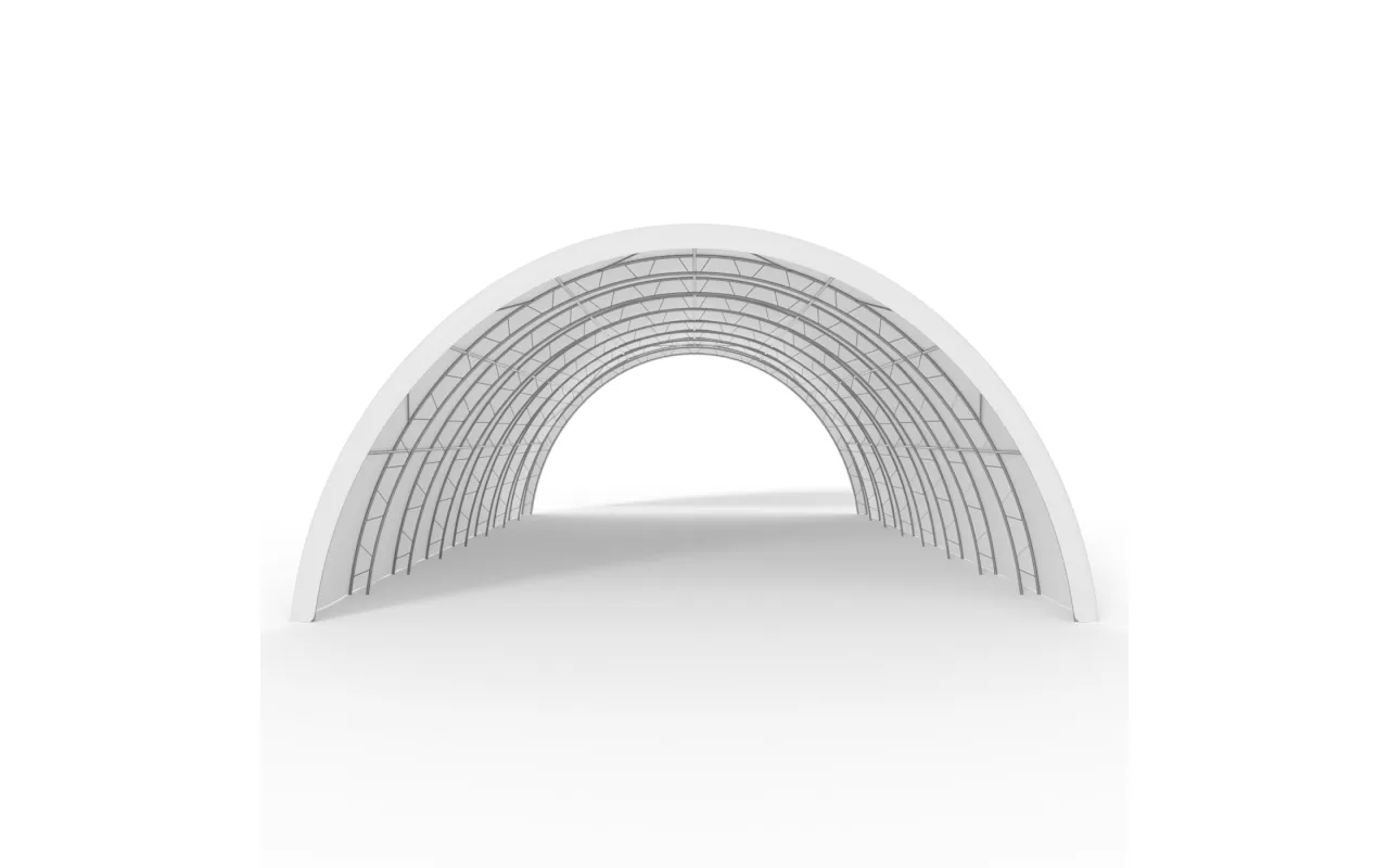 Kompaktowa, ale solidna hala tunelowa o długości 18 m sprawdzi się jako sezonowy magazyn lub osłona dla maszyn rolniczych. Wzmocniona konstrukcja kratownicowa zapewnia odporność na wiatr i śnieg, a otwarte zakończenia umożliwiają swobodny przejazd sprzętu. Pokrycie z PVC 750g/m² dobrze chroni przed wilgocią i promieniowaniem UV. Możliwość rozbudowy o ściany z bramą lub pełne pozwala dopasować konstrukcję do indywidualnych potrzeb.