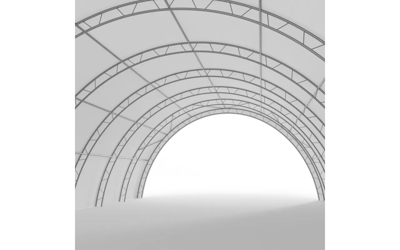 Wariant z plandeką PVC 900g/m² to propozycja dla użytkowników oczekujących najwyższej trwałości. Tunelowa hala o długości 30 m oferuje dużą powierzchnię użytkową, którą można elastycznie dostosować do aktualnych potrzeb. Konstrukcja na dwupunktowej kratownicy zapewnia wysoką nośność, a możliwość montażu ścian pozwala przekształcić tunel w zamkniętą przestrzeń magazynową.