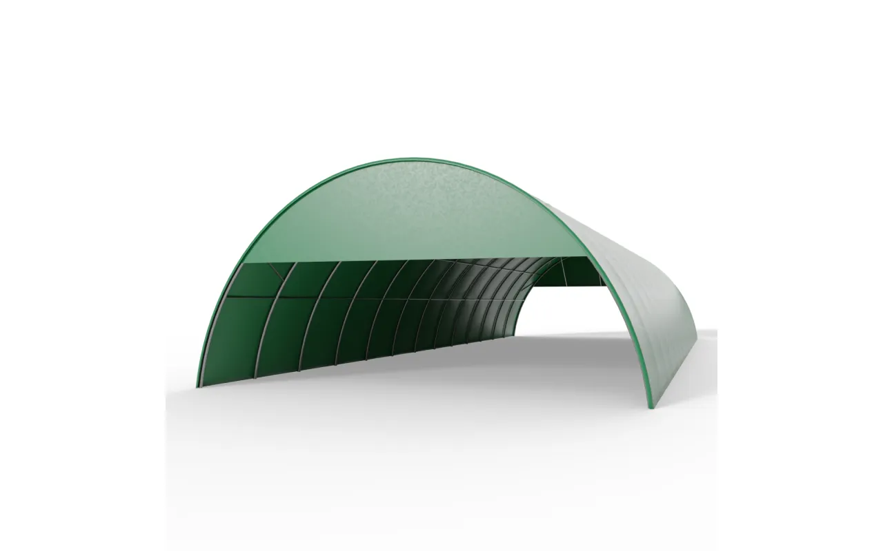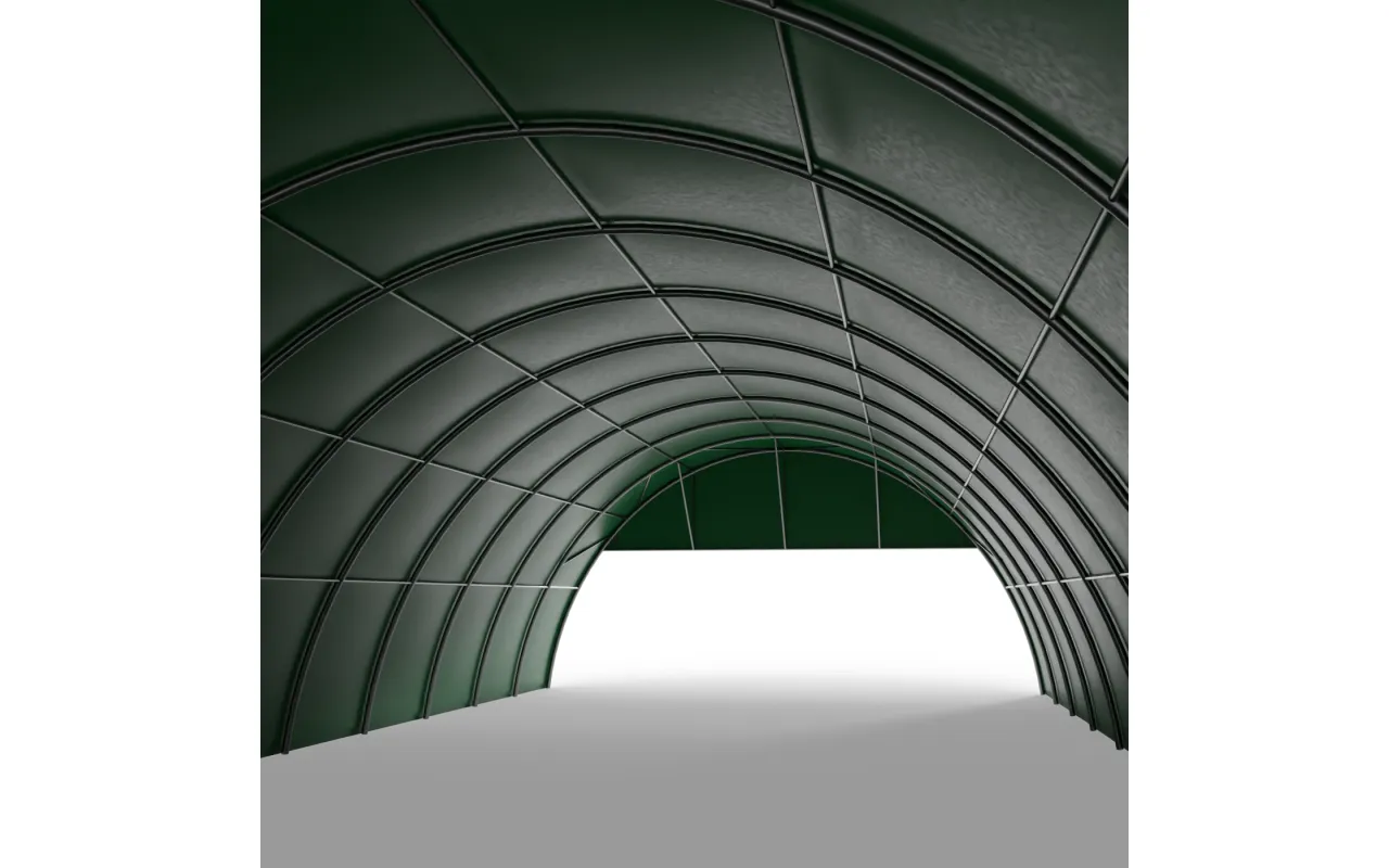 Osłona szczytowa ze stelażem do hali tunelowej 12m w wersji zielonej PVC 750g/m² to praktyczne rozwiązanie służące do częściowego osłonięcia hali tunelowej od frontu lub tyłu. Zamiast pełnej ściany, osłona zabezpiecza górną część szczytu, chroniąc wnętrze hali przed wiatrem, opadami atmosferycznymi i nawiewanym kurzem. Tego typu rozwiązanie idealnie sprawdza się tam, gdzie zależy nam na osłonie towarów, ale jednocześnie chcemy zachować swobodny przepływ powietrza lub szybki dostęp do wnętrza. Osłona szczytowa ze stelażem do hali tunelowej 12m w wersji zielonej PVC 750g/m² zwiększa funkcjonalność konstrukcji, nie ograniczając jej elastyczności użytkowej – szczególnie w przypadku sezonowego przechowywania plonów, maszyn czy materiałów budowlanych.