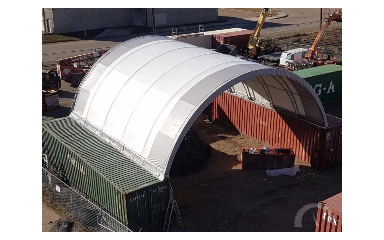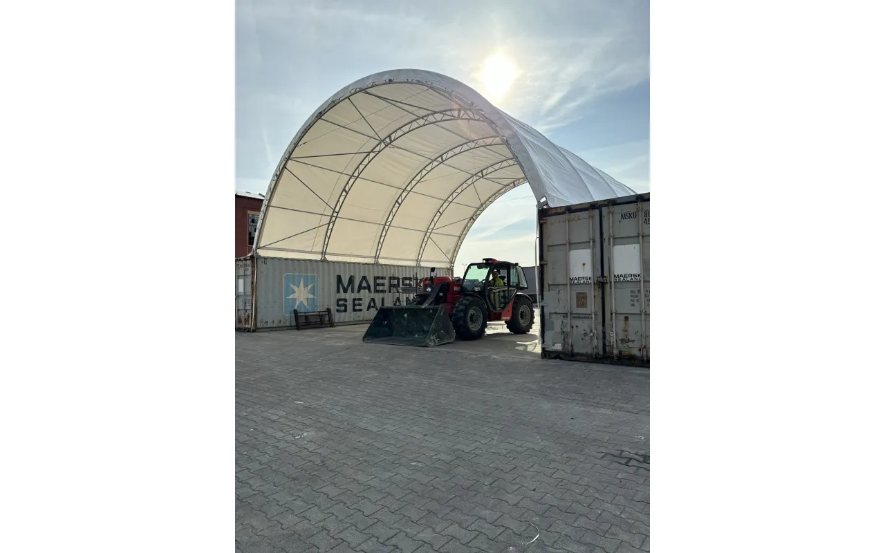 - Gruba plandeka, bezszwowe połączenia i jednolita powłoka dachu oraz ścian to jedna z wielu zalet naszych zadaszeń kontenerowych .