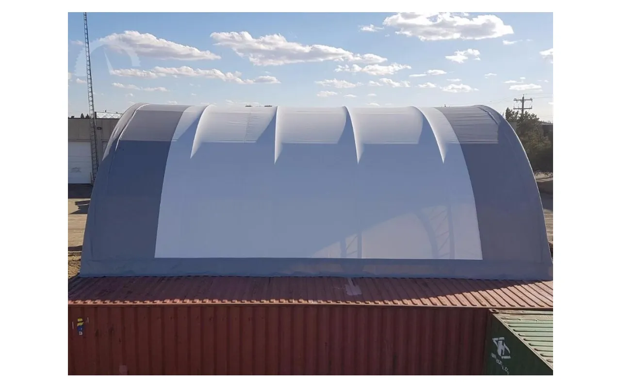 - Gruba plandeka, bezszwowe połączenia i jednolita powłoka dachu oraz ścian to jedna z wielu zalet naszych zadaszeń kontenerowych .